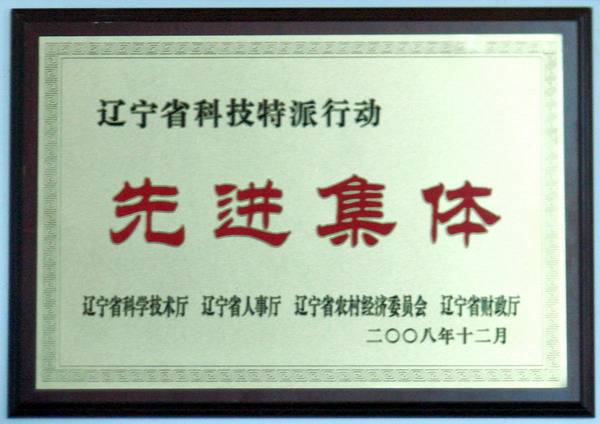 2008年我院被辽宁省科技厅、人事厅、农委,财政厅命名为“辽宁省科技特派行动”先进集体